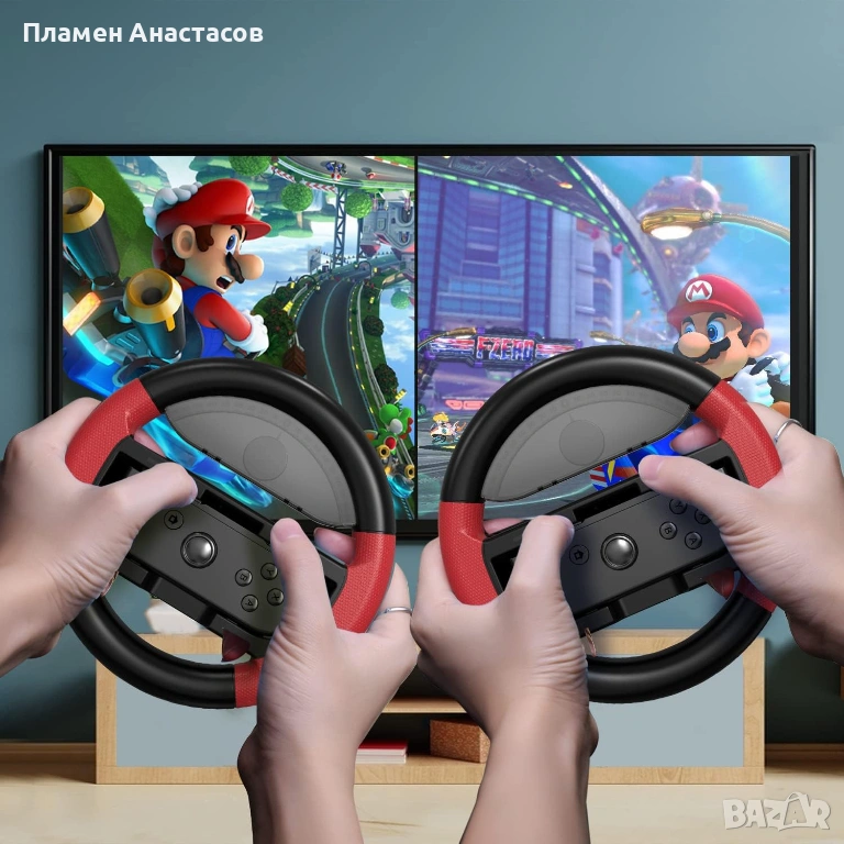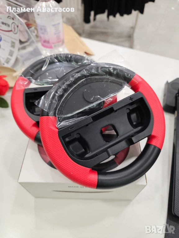 Комплектът включва 2 броя волани с комбиниран черно-червен дизайн, подходящи за мултиплейър игри и състезания с приятели или семейство.