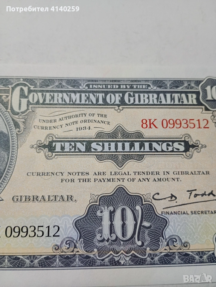 ГИБЛАРТАР БАНКНОТА 10 ШИЛИНГА 2018 Г → Обява 53505837