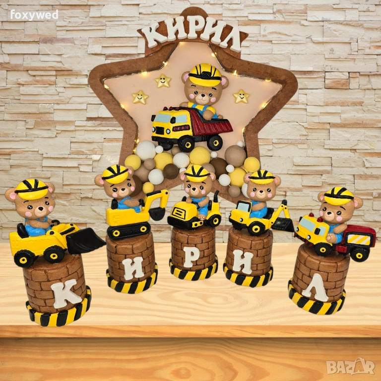 Персонализиран Комплект Керамични кубчета и Пано Мечета Строители
