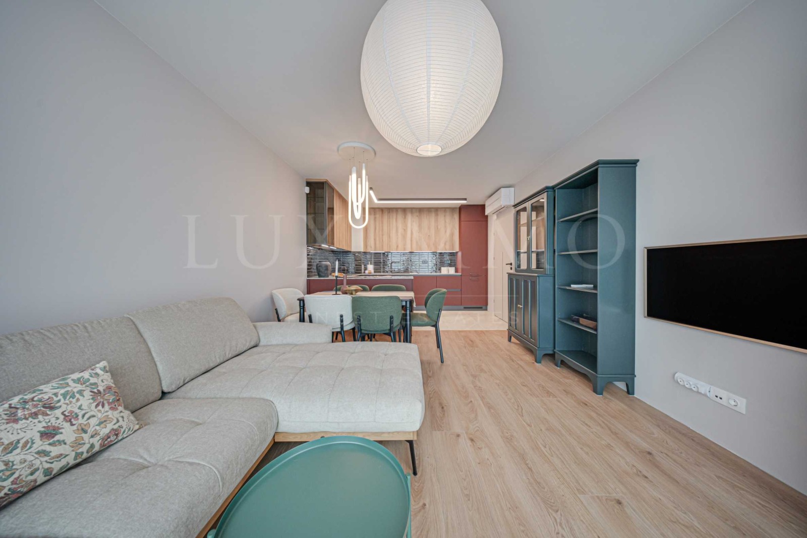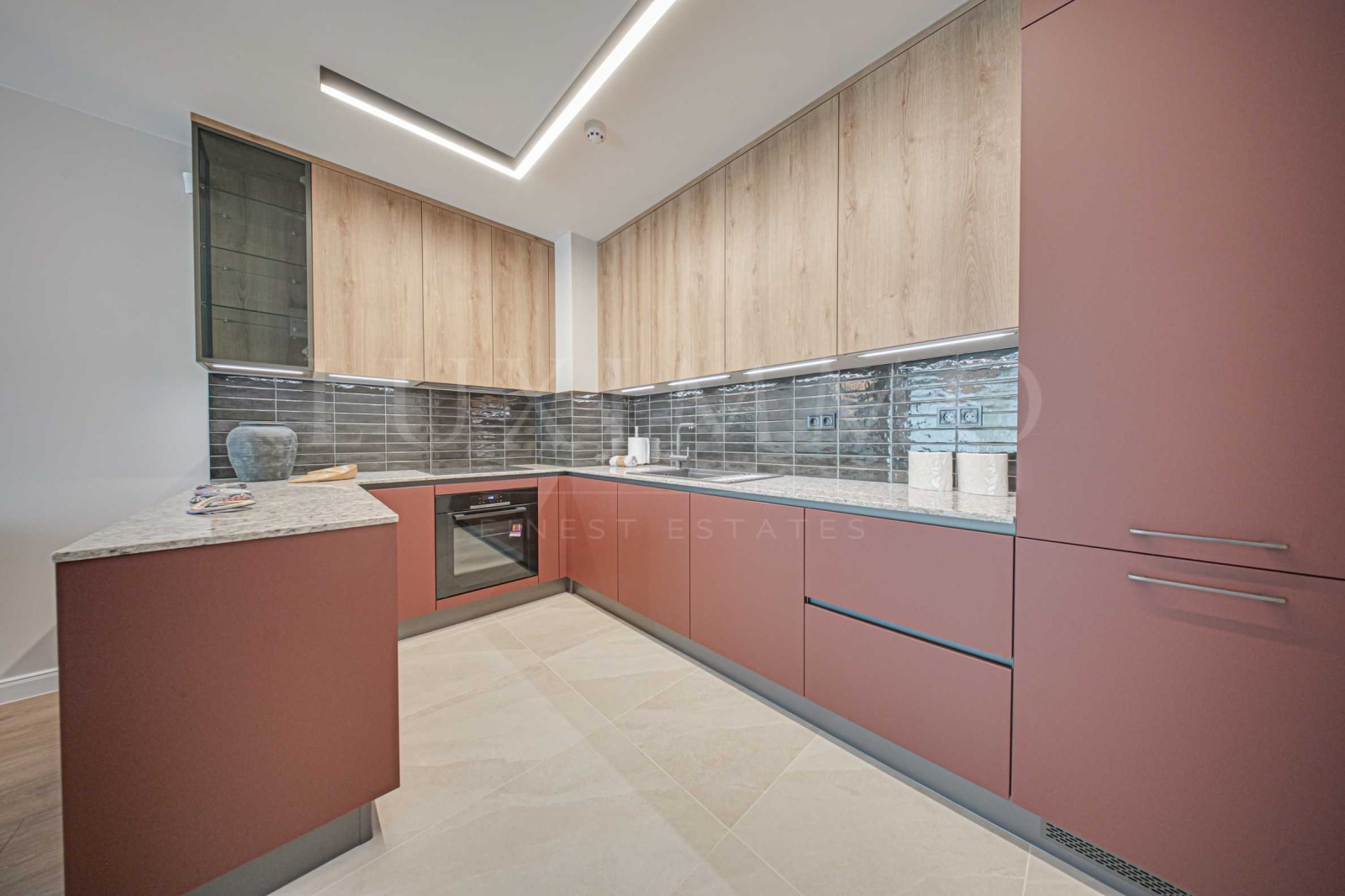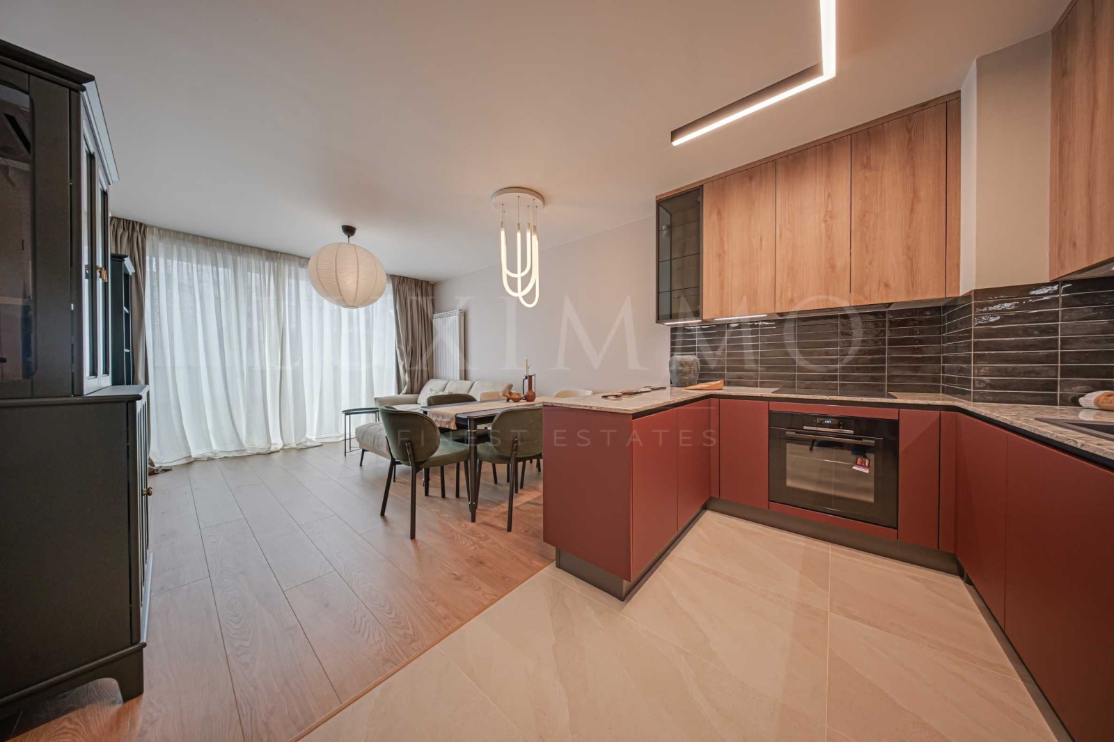 Жилището е завършено по индивидуален дизайнерски проект с висококачествени материали и внимание към всеки детайл.