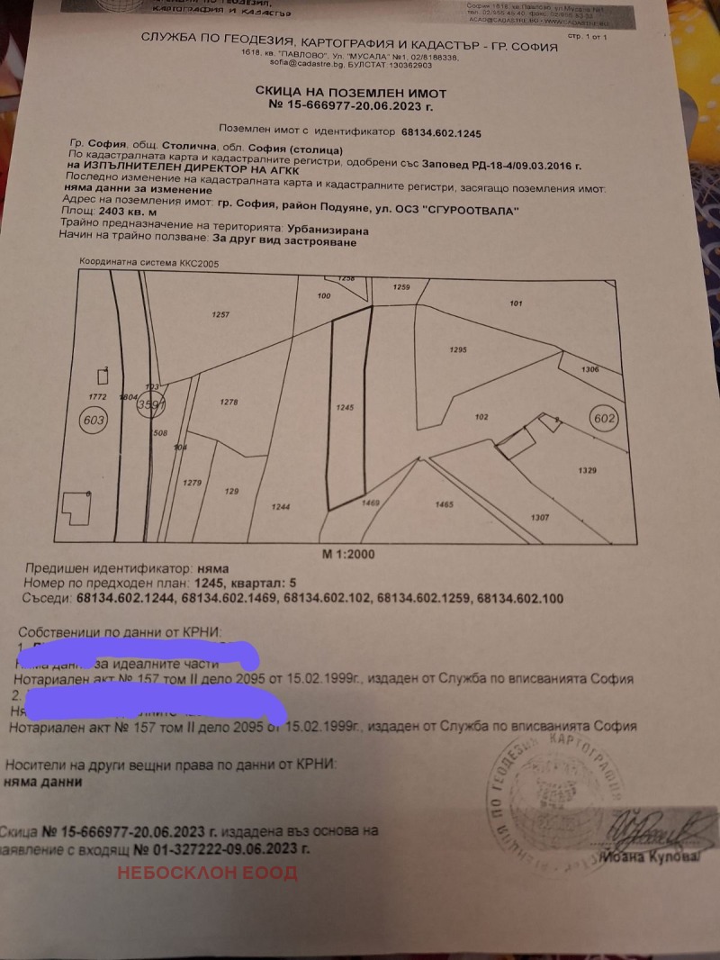 *Парцел 2 е с идентификатор 68134.602.1245 и с площ от 2403 кв.м