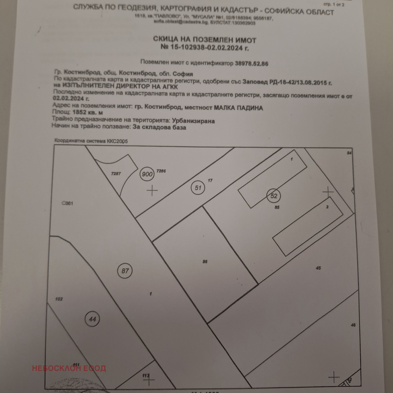 Парцелът се намира на входа на гр.Костинброд на първото кръгово,с директен вход/изход на Ломско шосе/път Е 81, изградена 2021г с идентификатор 38978.52.86.
