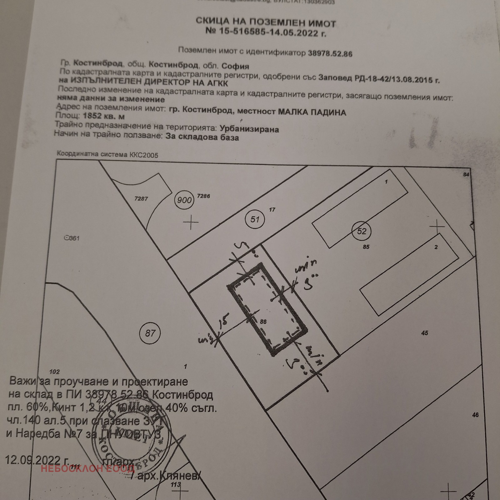Агенция НЕБОСКЛОН ЕООД продава ексклузивно парцел с действащ бизнес и виза за проектиране на складова база в него.