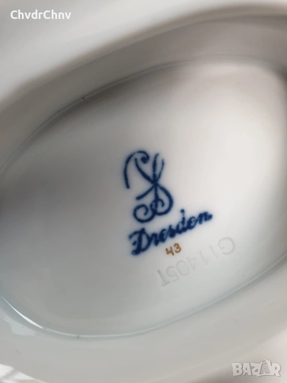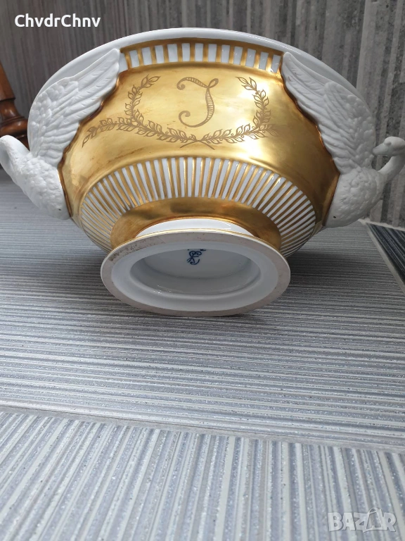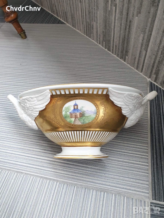 Dresden фруктиера 31см-2кг/Дрезден стара немска порцеланова купа с дръжки-лебеди
