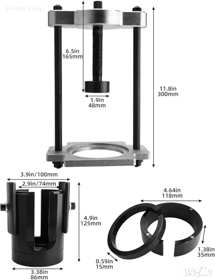 * Вътрешен диаметър: 74 мм (2.9 in)