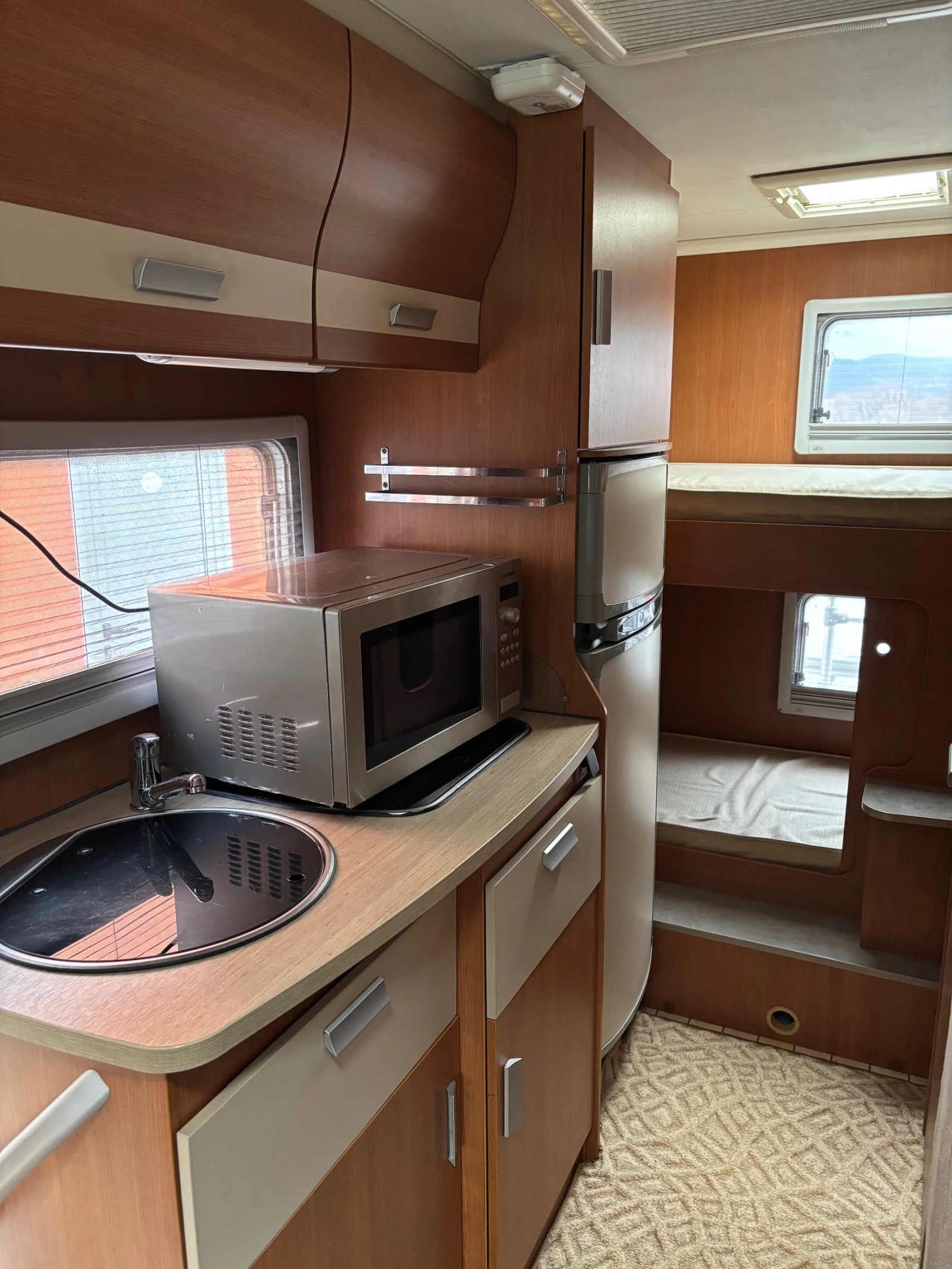 ДОПЪЛНИТЕЛНА ИНФОРМАЦИЯ: Основни характеристики и спецификации на кемпера: Модел: Pilote A650 Alcoven Шаси: Fiat Ducato Ръчна скоростна кутия 6ск. Резервоар за гориво: 75 л. Дължина: 6, 50 (м) Ширина: 2, 35 (м) Височина: 3, 10 (м) Технически допустима обща маса: 3 500 (кг) Б категория! ! ! Капацитет и системи: Макс. брой места при движение (стандартен): 6 Места за спане (максимум души): 5 + 1 Размери на предно легло: 200 х 160; Обем на хладилника: 140 литра; Отоплителна система: Truma Combi 6; Обем на чиста вода: 120 л. ; Обем на резервоара за отпадни води: 100 л. ; Контакти за зареждане на ток 220 V / 12 V / USB; Комфорт и допълнителни екстри на кемпера: LED телевизор с плосък екран; Соларни панели 2 х 160W; Инвертор 12V/220V /3000Watt; Два броя карбонови газови бутилки; Щори против насекоми на всички отвори и люкове; Стойка за З бр. велосипеди; Теглич. Кемперът разполага с всичко необходимо за едно приятно и удобно преживяване на път като за това помагат ДВУЕТАЖНИТЕ ЛЕГЛА В ДЪНОТО! !! СОЛАРНАТА СИСТЕМА и ГОЛЕМИЯТ ХЛАДИЛНИК С ОТДЕЛНА КАМЕРА! !! МНОГО ДОБРО ВЪТРЕШНО РАЗПРЕДЕЛЕНИЕ ! !! Идеален за семейство! !! Кемперът никога не е отдаван под наем! ! ! Доста запазен интериор и нисък пробег! ! ! НАЙ-ВИСОКА ЕКО НОРМА, МОЖЕ ДА ВЛИЗА НАВСЯКЪДЕ В ЕВРОПЕЙСКИТЕ ГРАДОВЕ! ! ! Лизинг! ! !