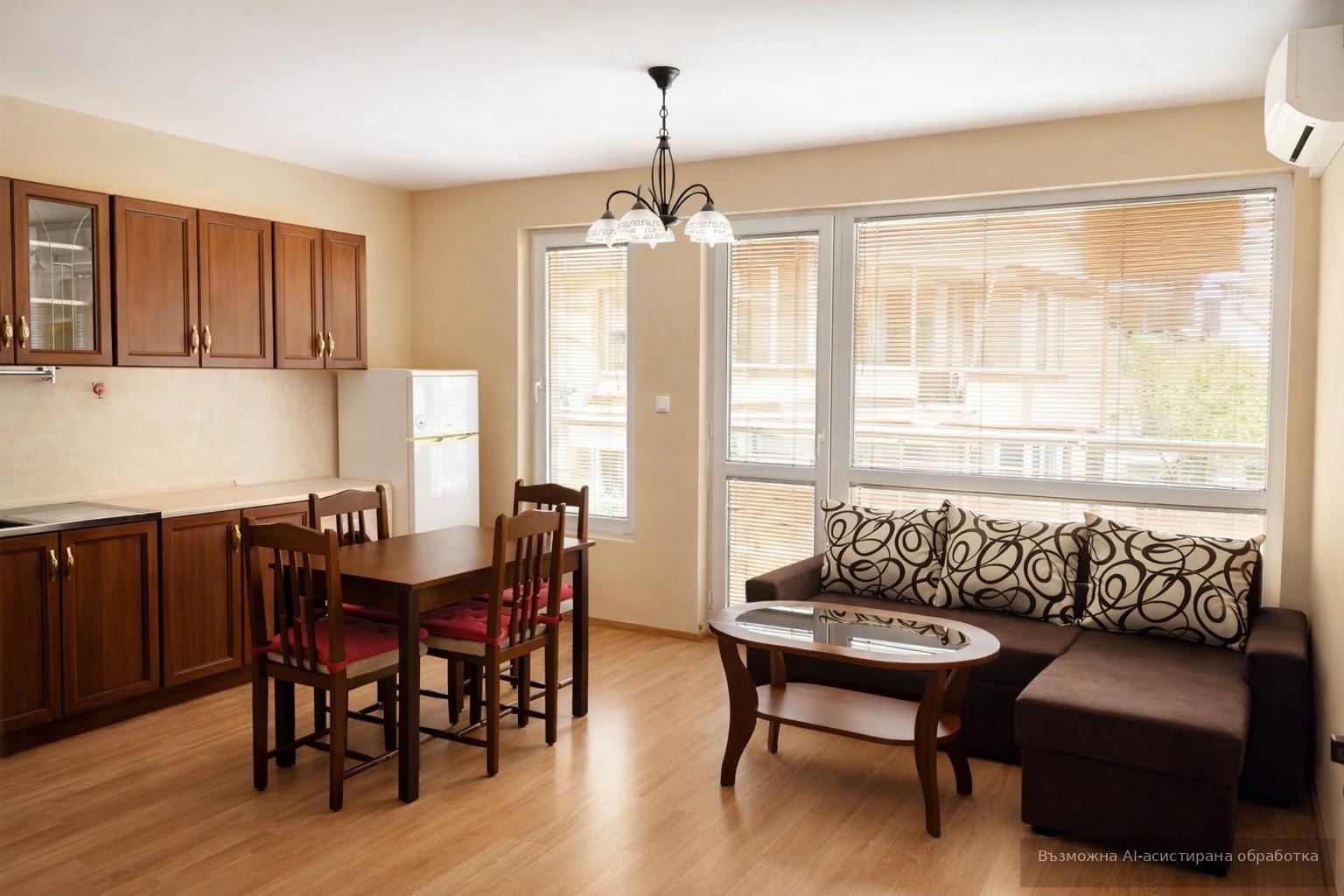 Жилището се предлага напълно обзаведено и оборудвано с всичко необходимо за едно домакинство.