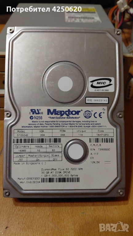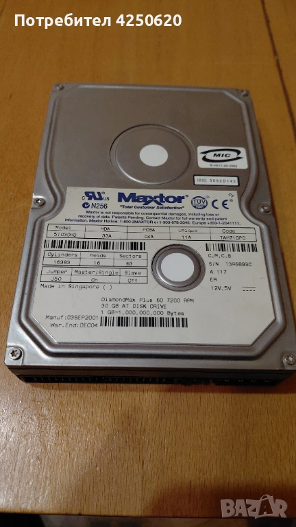 MAXTOR 30GB IDE 3.5 INCH HDA 04A PCBA 05A UNIQUE 11A CODE JAC61HU0, C,M,B,B, снимка 1 - Твърди дискове - 53506796 MAXTOR 30GB IDE 3.5 INCH HDA 04A PCBA 05A UNIQUE 11A CODE JAC61HU0, C,M,B,B, снимка 2 - Твърди дискове - 53506796 MAXTOR 30GB IDE 3.5 INCH HDA 04A PCBA 05A UNIQUE 11A CODE JAC61HU0, C,M,B,B, снимка 3 - Твърди дискове - 53506796 1/3