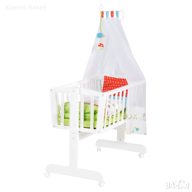 Люлката може да се регулира с ключалката към кошче за кош или бебешко легло.