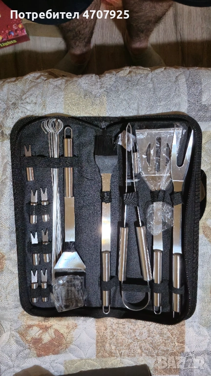 Description: Комплектът аксесоари за грил от 20 части ще ви помогне да приготвяте храна на грил като професионалист. Той е лесен за пренасяне и съхранение и може да се използва дори по време на почивка. Сега можете да поглезите любимите си хора с вкусна храна, където и да се намирате. Какво може да бъде по-приятно от обилно хранене на открито със семейството и приятелите? Може да се използва както на открито, така и в кухнята. Аксесоарите са изработени от висококачествена неръждаема стомана и силикон. Почиствайте на ръка или в съдомиялна машина. Лесно се транспортира и съхранява. Грилът на практика се е превърнал във форма на изкуство за всички нас, както и във форма на общуване и забавление. Добрият грил, около който да съберете семейството или приятелите си, е идеалното място за прекарване на качествено време. Затова не правете компромиси при избора на аксесоарите за грил, така необходими при приготвянето на храната. Един качествен комплект прибори за грил ще улесни и украси удоволствието от "гриловането" и ще издържи повече от един сезон. Освен това може да бъде много полезен подарък за близките. Приборите за грил са изработени от висококачествена неръждаема стомана, устойчиви са на ръжда, не са запалими и могат да се мият в съдомиялна машина. Всеки уред за грил има дръжка и удобни примки за окачване, които ви помагат да го съхранявате лесно. Висококачествената неръждаема стомана прави приборите изключително устойчиви на деформация и дълготрайни. Капакът е изработен от плат и закрепва приборите за грил просто и здраво с помощта на ластици. Комплектът от 20 аксесоара за барбекю съдържа: 1 шпатула, 1 голяма вилица, 1 щипци, 1 четка, 1 четка за почистване, 7 шишчета, 8 прибора за царевица. Цвят: сребрист/черен Материал: Силиций/Инокс Марка: Quasar & Co. Размери на опаковката: 38 x 15 x 4 cm (Д x Ш x В) Тегло: 1 кг