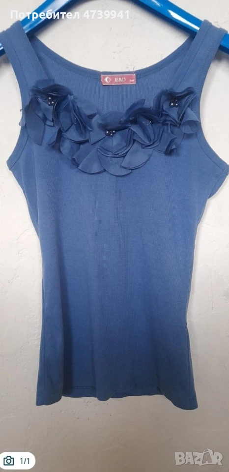 Стилен дамски потник в наситен син цвят, изработен от еластична оребрена материя, която приляга комфортно по тялото. Моделът е акцентиран с ефектни текстилни цветя и перли в горната част, придаващи женствен и елегантен вид. Подходящ както за ежедневие, така и за по-официални поводи.