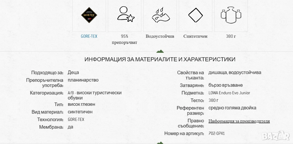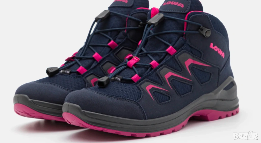 LOWA Innox Evo GTX QC Junior са перфектните обувки за млади любители на дейности на открито. Благодарение на леката и издръжлива гумена подметка, естественият стремеж на всички деца да излизат и да изследват, може да бъде задоволен до насита. Подметката е с дизайн на протектора, ориентиран към дейности на открито, за оптимално сцепление, така че малчуганите ще имат необходимото сцепление. Освен това, отличното омекотяване на обувката ще облекчи натоварването на ставите им. За още повече омекотяване и отскок, LOWA разработи своя собствена пяна DynaPu за междинната подметка. Освен това, те използваха Single Injection за междинната подметка. Този метод предлага най-висока прецизност с директна връзка между подметката и горната част. Нещо повече, обувката е оборудвана с така наречената Support Frame, която представлява по-висока обвиваща се мрежеста конструкция, осигуряваща опора при използване извън пътеките. Тъй като никой не обича мокри крака, дори децата, обувката има водоустойчива и дишаща подплата GORE-TEX. Друга страхотна характеристика е системата за бързо връзване. Това ще ви бъде особено полезно, когато се изкачвате по хълмовете с група младежи, които нямат голям опит в връзването на обувките си.