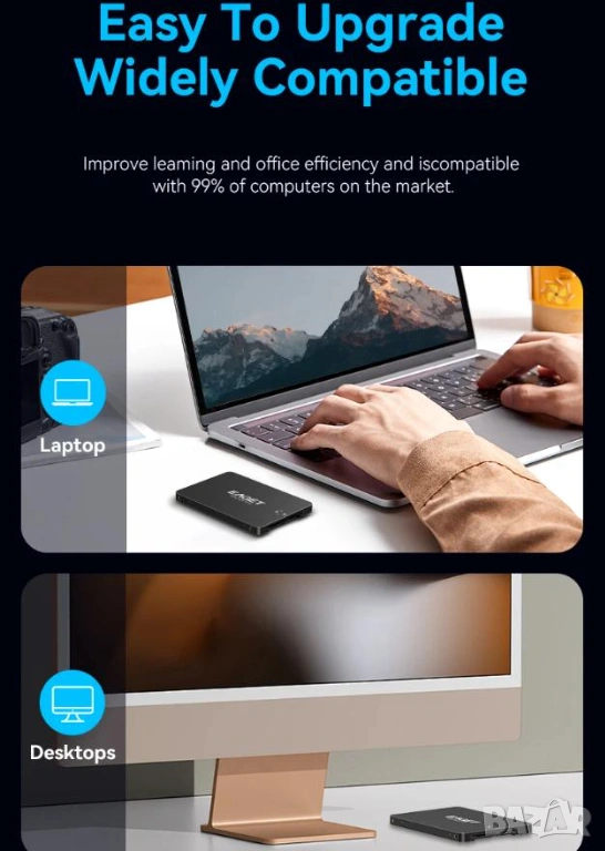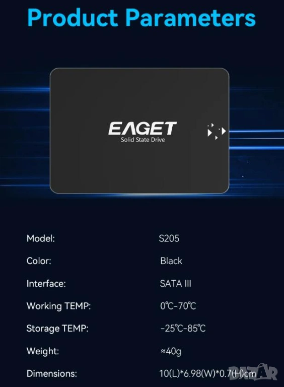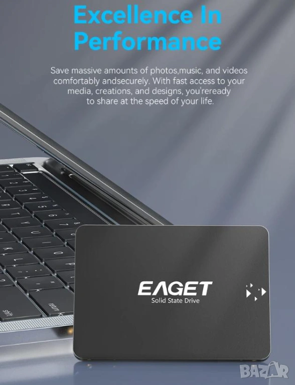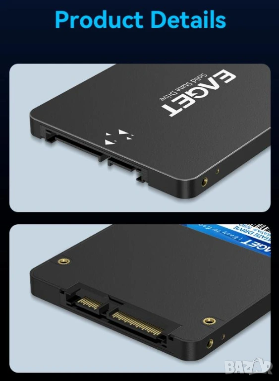 EAGET SSD 120GB SATAIII 6Gb/s 2.5" SATA R530/WR500 3D TLC Nand Flash NVME SMI TRIM NCQ S.M.A.R.T HDD