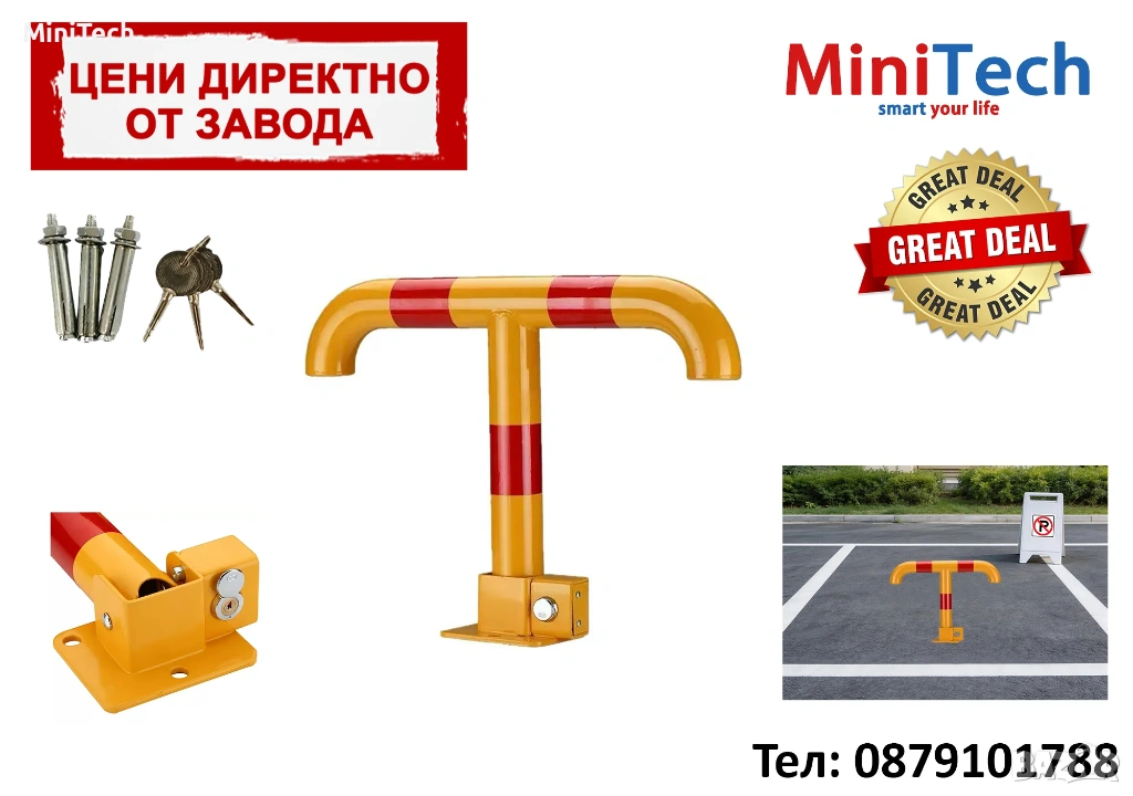 Универсално стоманено паркинг колче, предназначено за ефективна защита на вашето паркомясто от нерегламентирано паркиране.