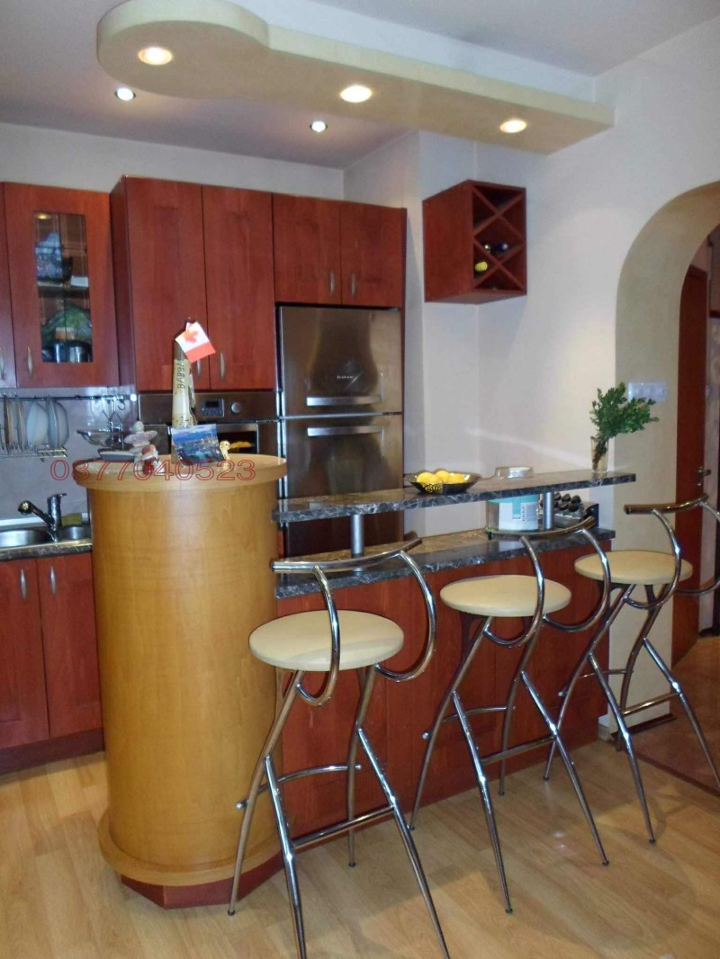Продавам къща, намираща се в източната част на града на три етажа.Първи етаж се състои от кухня, трапезария, хол(отворено пространство), тоалетна и килер. Втори етаж-две спални с излаз на тераси, едната е 32 кв.с дрешник,а другата 16кв., баня с вана, душкабина и тоалетна. Трети етаж-спалня с фитнес, баня и тоалетна, голямо антре и две тераси. Къщата е с локално парно на пилети за зимата и климатици за лятото. при интерес директно от собстбеник 0877040523 Иванов.
