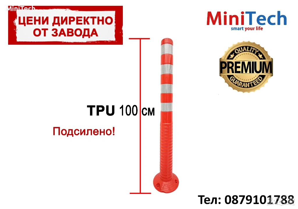 Паркинг колче от еластичен термопластичен полиуретан, 100см. височина, 19.5см. диаметър на основата.