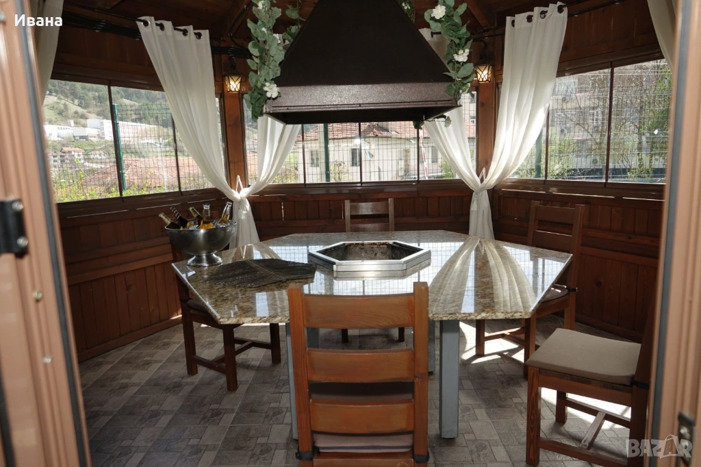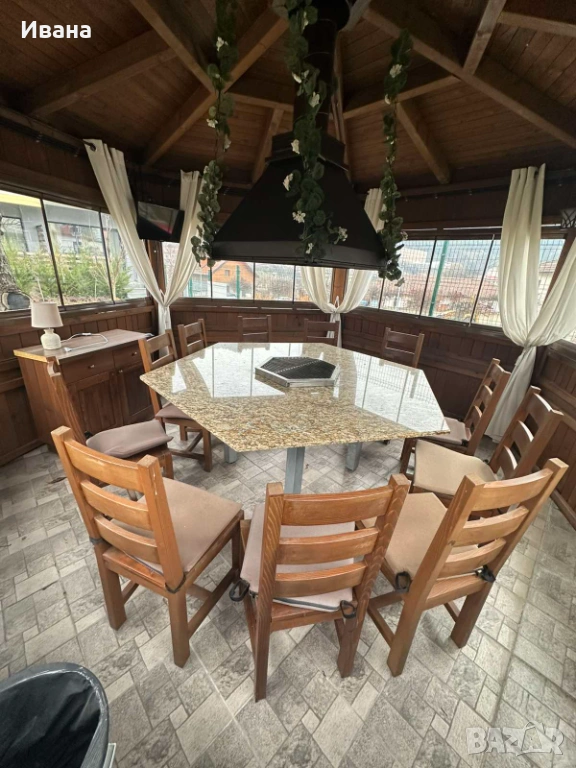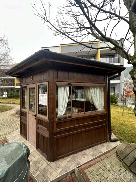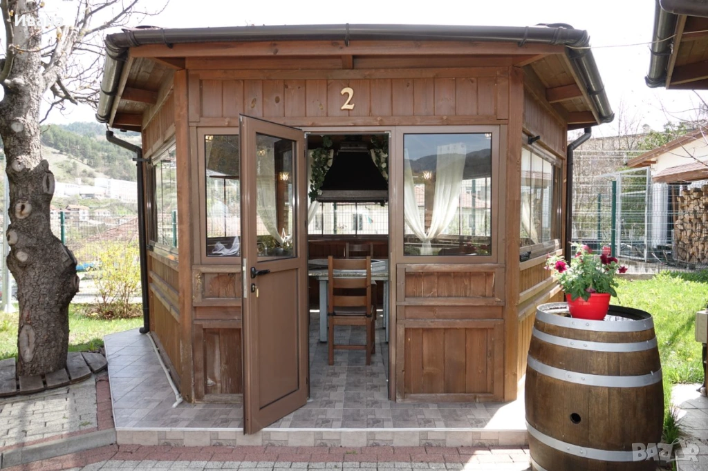 Предлагаме за продажба шест напълно оборудвани, масивни дървени беседки в отлично състояние, които в момента са разположени в парка на хотелски комплекс в град Девин. Беседките са затворен тип, подходящи за целогодишно ползване и изцяло оборудвани за барбекю.
