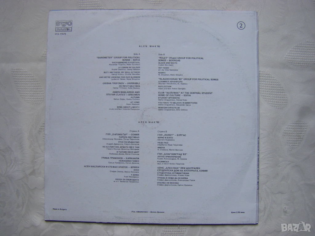 Грамофонна плоча - ВТА 11576 - Фестивал на политическата песен "Ален мак" (1985; Благоевград) - втора плоча