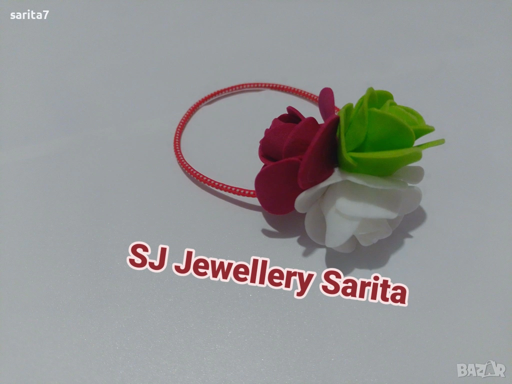Гривна мартеница с рози от фоам с цветовете на Българското знаме  → Обява 53507554