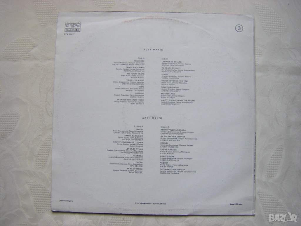 Грамофонна плоча - ВТА 11577 - Фестивал на политическата песен "Ален мак" (1985; Благоевград) - трета плоча