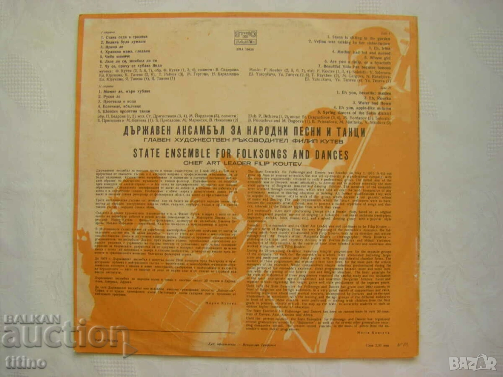 Грамофонна плоча - ВНА 10420 - Държавен ансамбъл за народни песни и танци с главен художествен ръководител Филип Кутев