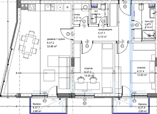 ЕРА Вива продава тристаен апартамент в новострояща се сграда в кв. Кайсиева Градина, гр. Варна. Имотът е със застроена площ от 99.75 кв.м. /119.42 кв.м. с общите части/ и е разположен на десети от общо дванадесет етажа. Състои се от входно антре /9.1 кв.м./, просторна и слънчева дневна с кухня и трапезария /34 кв.м./, две спални /13.3 и 13.5 кв.м./, баня с тоалетна /5.15 кв.м./, килер /2.2 кв.м./, отделна тоалетна /2.15 кв.м./ и два балкона /3.9 кв.м./. Жилището ще бъде издадено по БДС - на шпакловка и замазка, с поставена ПВЦ дограма и блиндирана входна врата. Нова и модерна сграда с качествено изпълнение и съвременна фасада. REHAU дограма с троен стъклопакет, асансьори Schindler, стилни общи части с гранит и стъклени парапети. Възможност за закупуване на външно или подземно паркомясто. Предлагат се двустайни и тристайни апартаменти с възможност за обединение. Отлична локация. Район с много добре изградена инфраструктура. На 200 м от магазин Алати и бул. 3-ти март . В близост до множество главни пътни артерии и спирки на градския транспорт.