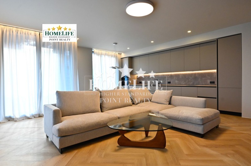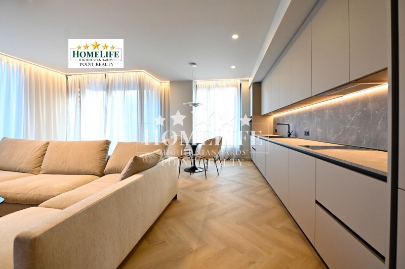 HomeLife Point offers to you an exceptional one-bedroom apartment for rent in the newest residential complex in Sofia - 'KOSHER'. A combination of location, modern design, technology, and convenience. The apartment is located on the fourth floor with south-facing living areas and views of the mountains. Luxuriously furnished and equipped with everything needed according to an individual project with high-end furniture and appliances. It features a spacious living room connected to a kitchen area with access to a balcony, a bedroom, a bathroom with WC, and a large entrance hall.