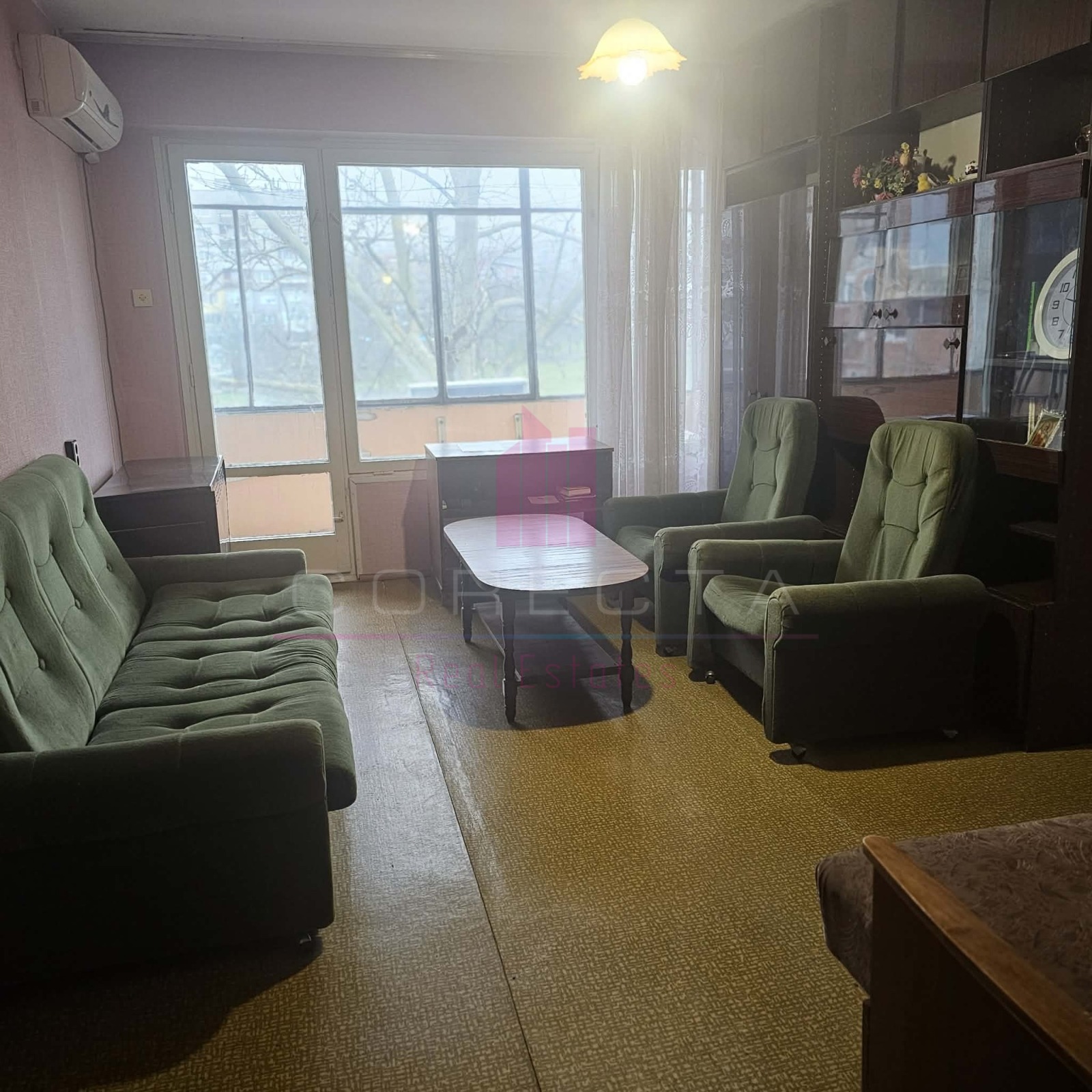КОРЕКТА ЕСТЕЙТ Ви предлага двустаен, саниран апартамент с ЧЖП 61.28кв.м, находящ се в непосредствена близост до у-ще Васил Левски. Локацията на имота е изключително удобна и атрактивна, като в района се намират всички големи хипермаркети, множество магазини, детски градини, заведения и др. Квартала е спокоен, с много зелени площи и места за свободно паркиране. Жилището е разположено на етаж четвърти в панелен блок с добре поддържани общи части и контрол на достъпа и има следното разпределение: коридор, ниша подходяща за изграждане на перално помещение, хол с излаз на тераса, спалня с PVC дограма, голяма кухня с тераса, отделно баня и тоалетна. Жилището може да бъде преустроено на голяма дневна с кухня и две спални, така че да отговаря на съвременните стандарти. Покрива е основно ремонтиран и няма никакви течове или влага. Предстои подмяна на дограмата на входа.