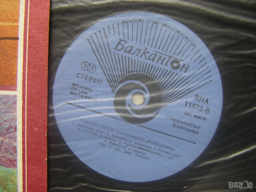 Грамофонна плоча - ВНА 11572 - Асеновградската народна група, ръководител и обработки Димитър Ангелов / Квартет устни хармоники "Родолюбие" - Асеновград, ръководител Славчо Найденов
