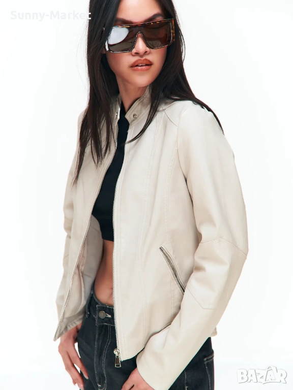 Дамско бежово кожено яке → Обява 53507890
