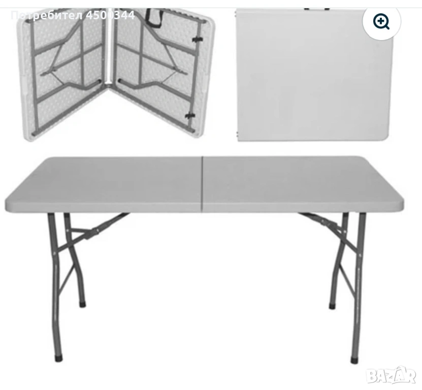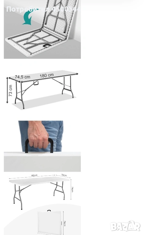 Маса Кетъринг сгъваема метални крака Чисто нова 180/75/70 см → Обява 53507922