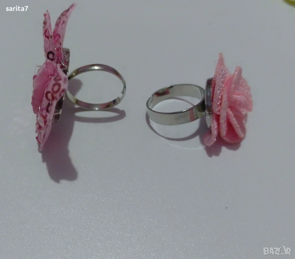 Розови сребристи пръстени с роза и пеперуда → Обява 53507951