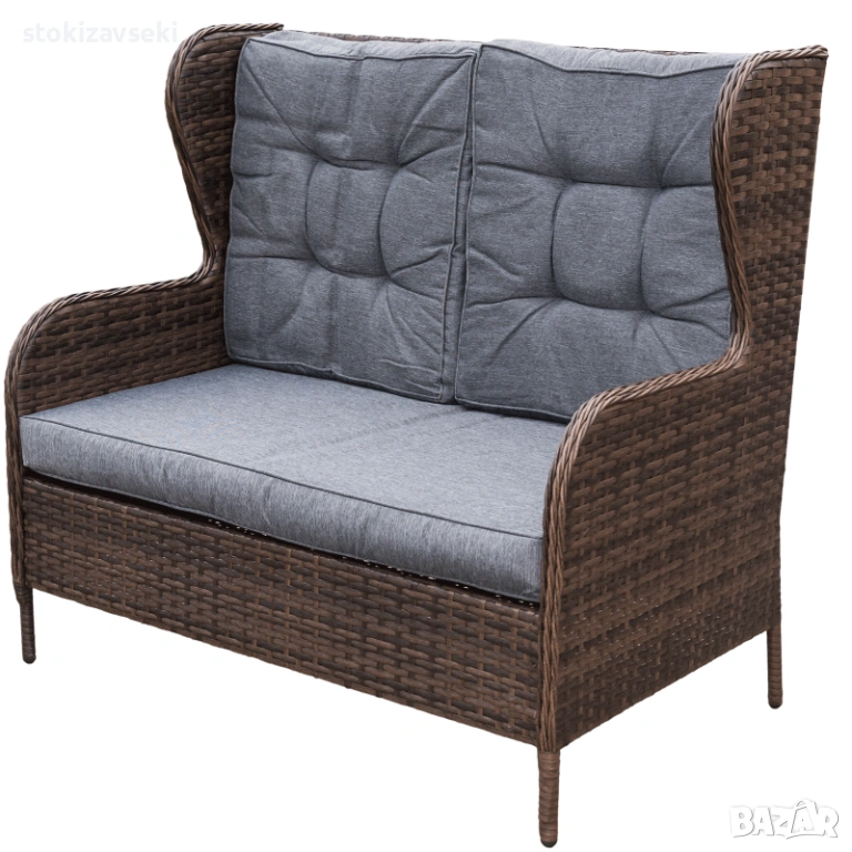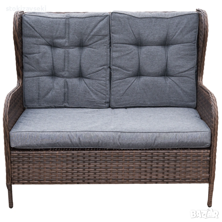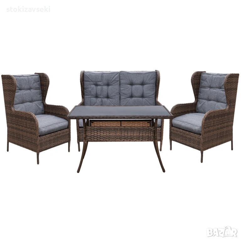 Градински комплект от четири части, който включва: маса за кафе – 1бр., фотьойл с облегалка – 2бр. и диван двуместен – 1бр.
