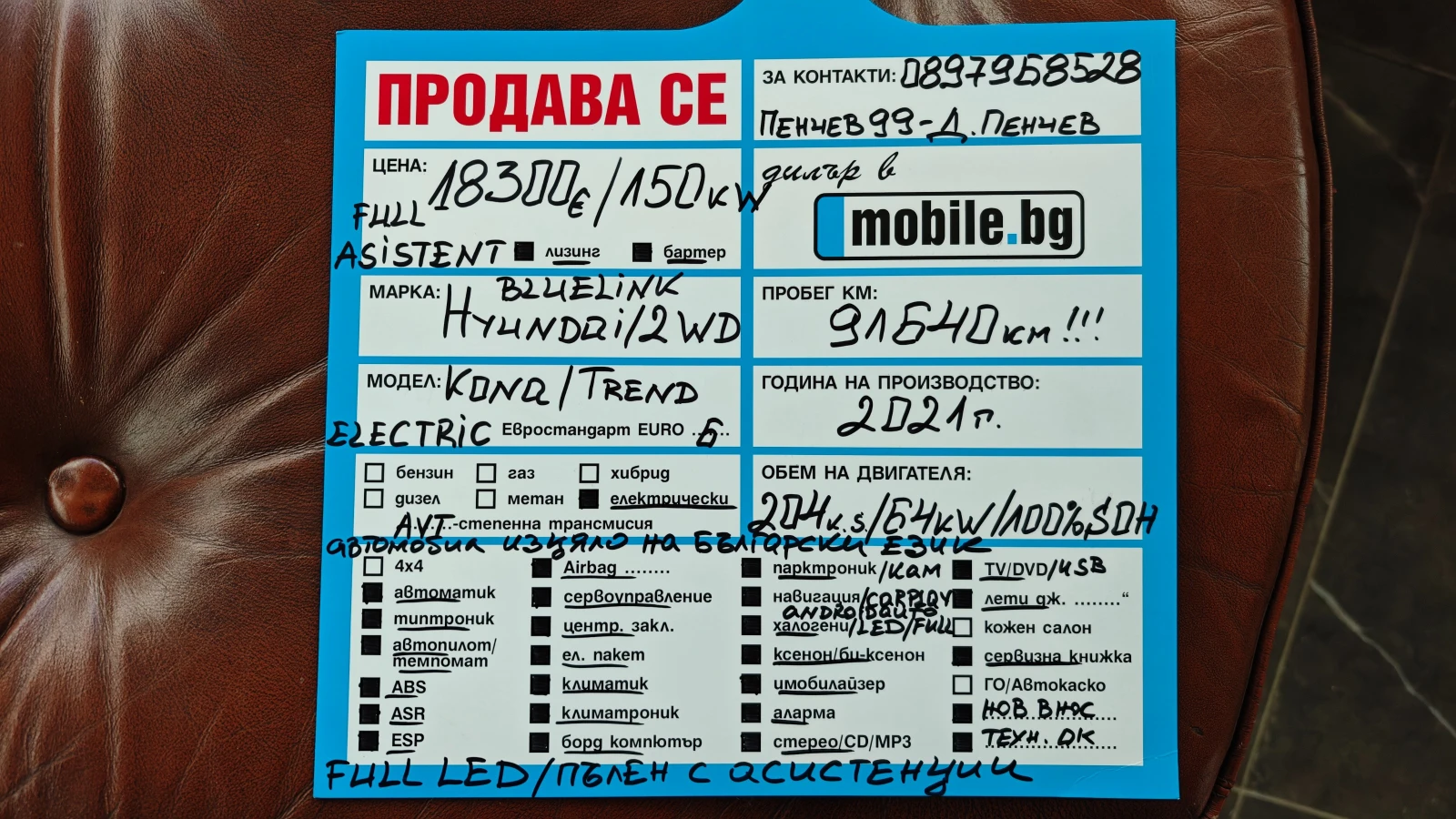 ЛИЗИНГ+БАРТЕР, Обслужване, Регистрация, Гаранция и Сервизна поддръжка Предлага Автокъща Пенчев99. Автомобила е внос от ГЕРМАНИЯ, СЪДЕЙСТВИЕ ЗА ПРОВЕРКА НА АВТОМОБИЛА В Сервиз на HYUNDAI KONA. Отлично Решение ЗА Ползване НА ПРОИЗВЕДЕНА ЕЛЕКТРОЕНЕРГИЯ от ВАША ФЕЦ ПРИ ПОДИГРАВАТЕЛНА ИЗКУПНА БОРСОВА ЦЕНА=0. 01цент.