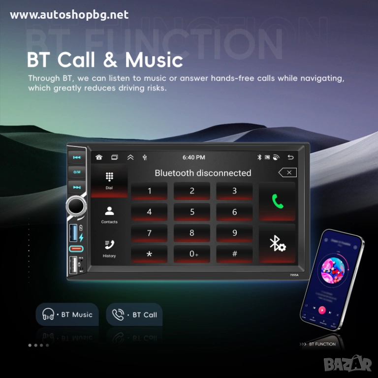 Bluetooth – поддържа A2DP възпроизвеждане на музика от телефона през Bluetooth