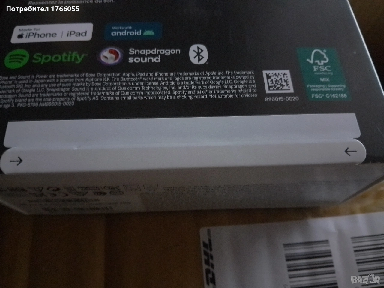 **Тестване за бързо зареждане, проведено от Bose чрез зареждане на слушалки с изтощена батерия в продължение на 15 минути, след което възобновяване на възпроизвеждането на аудио при сила на звука от 75 dBSPL. Животът на батерията варира в зависимост от настройките и употребата. Времето за постигане на пълно зареждане на слушалките е определено чрез зареждане на слушалки с изтощена батерия до 100%.**