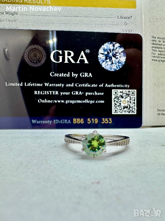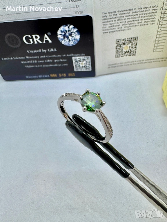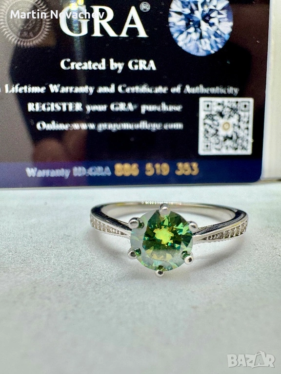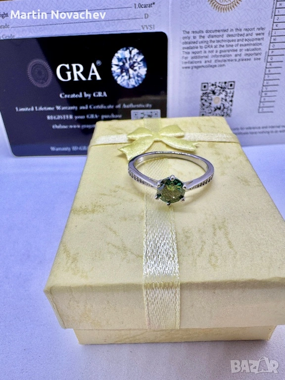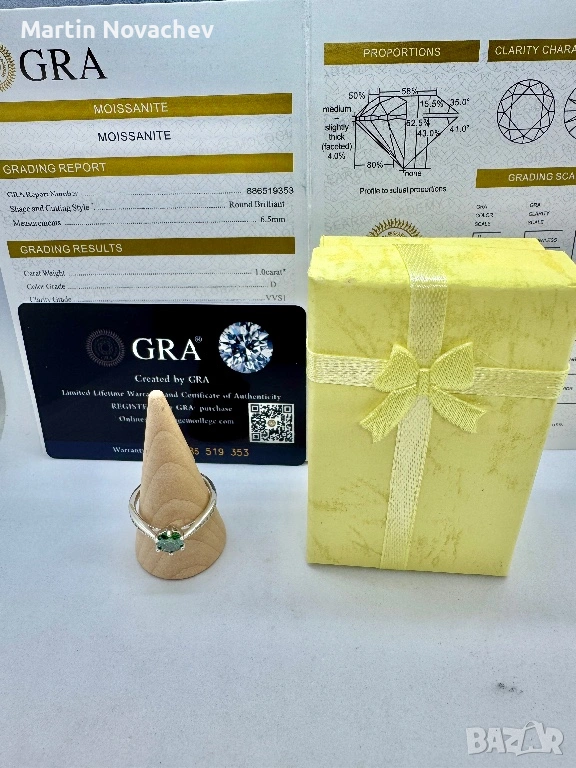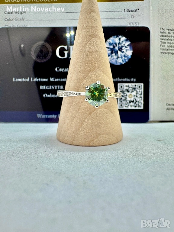 Сребърен пръстен с мойсанит (Диамант) 1 карат → Обява 53508195