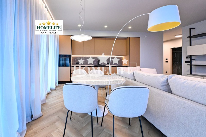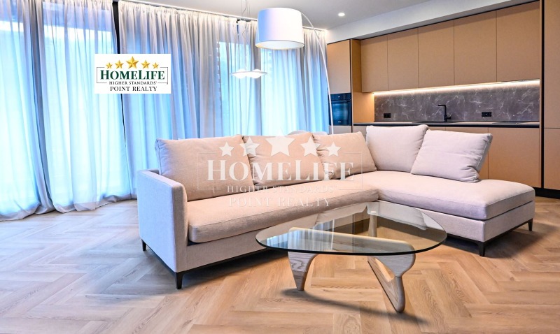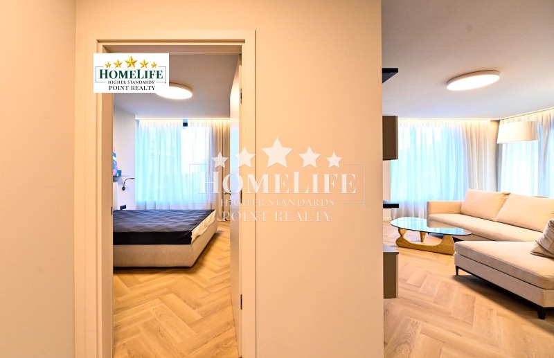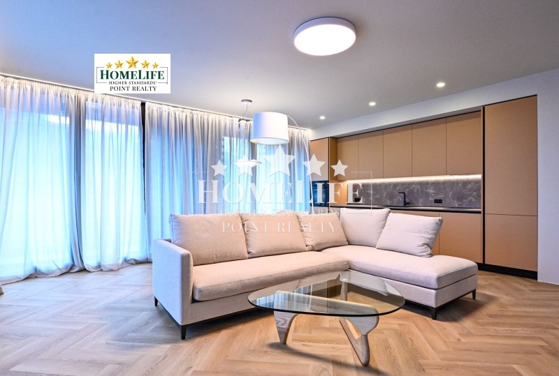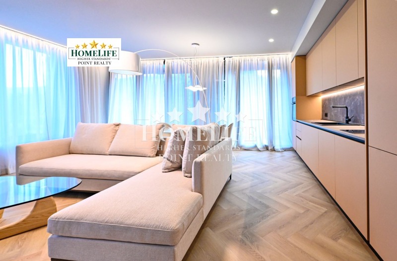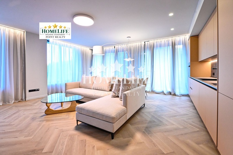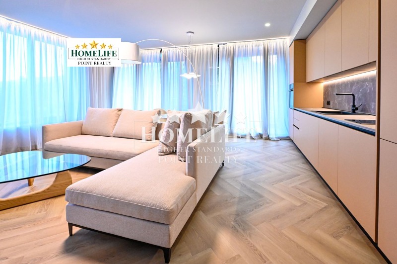 HomeLife Point offers to you an exceptional one-bedroom apartment for rent in the newest residential complex in Sofia - 'KOSHER'. A combination of location, modern design, technology, and convenience. The apartment is located on the fifth floor with south-facing living areas and views of the mountains. Luxuriously furnished and equipped with everything needed according to an individual project with high-end furniture and appliances. It features a spacious living room connected to a kitchen area with access to a balcony, a bedroom, a bathroom with WC, and a large entrance hall.