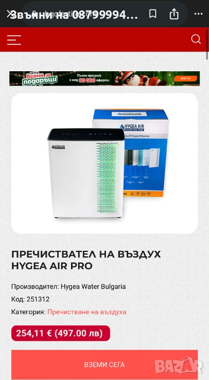 на въздух Hygea Air Prо, HEPA H13, Smart Wi-Fi, UV лампа, Йонизатор, 58W, Бял