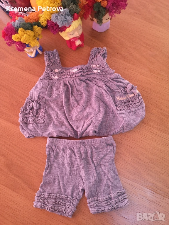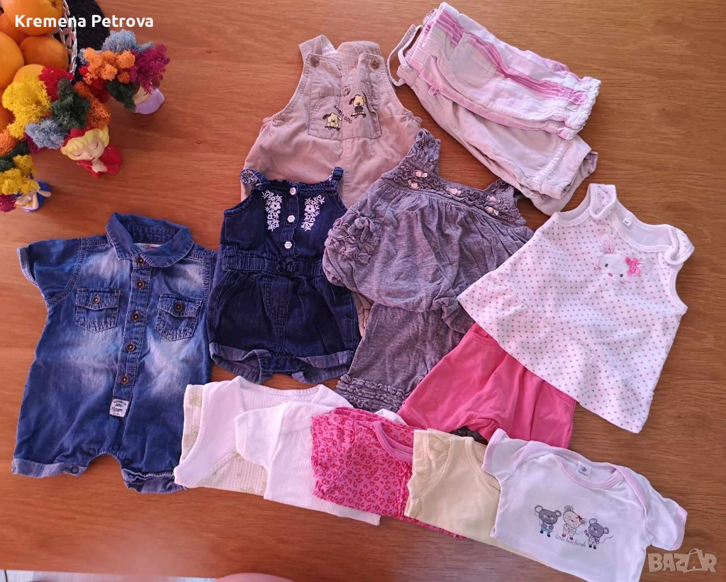 ЛЕТЕН ЛОТ РАЗМЕР 56-62 (0-3 месеца): 2 броя дънкови гащеризона Minoti, 2 комплекта потник с панталонки ( единият в сиво е на Calvin Klein), 3 броя тениски, боди, потник, гащеризон и 2 панталона.