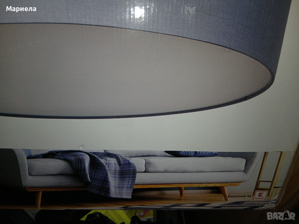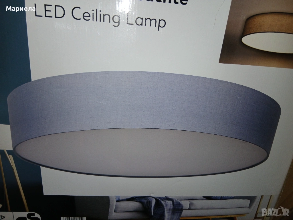 Този продукт е LED плафон Liv&Bo със сив текстилен абажур, с диаметър 60 см.