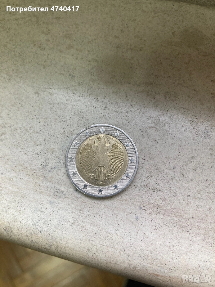 Рядка евро монета 2 цента Германия надпис 2016-та знак F → Обява 53508626