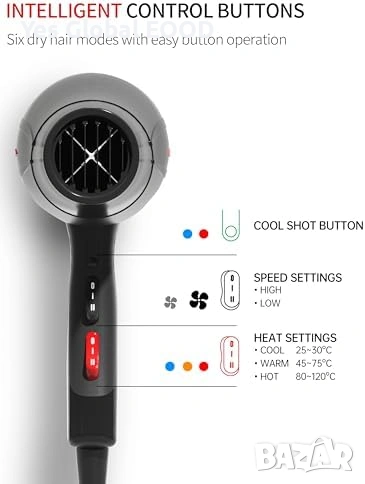 Професионален сешоар 3500W йонен с дифузер
