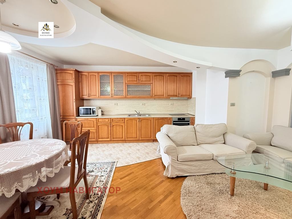 Хоум Навигатор предлага под наем светъл, просторен, напълно обзаведен тристаен апартамент. Жилището се състои от всекидневна с кухненски бокс, две спални, баня с тоалетна и отделна тоалетна, просторен коридор, балкон. Обзаведен с всичко необходимо за едно домакинство. След ремонт. Отоплението е чрез локално парно на ток. Монтирана СОТ охранителна техника. Има и допълнителна опция за опция за свободно паркиране в двора на сградата. С възможност за наемане на гараж, на цена 150 евро.Отлични общи части. За контакт: Живко Добрев - +359 87 7299551