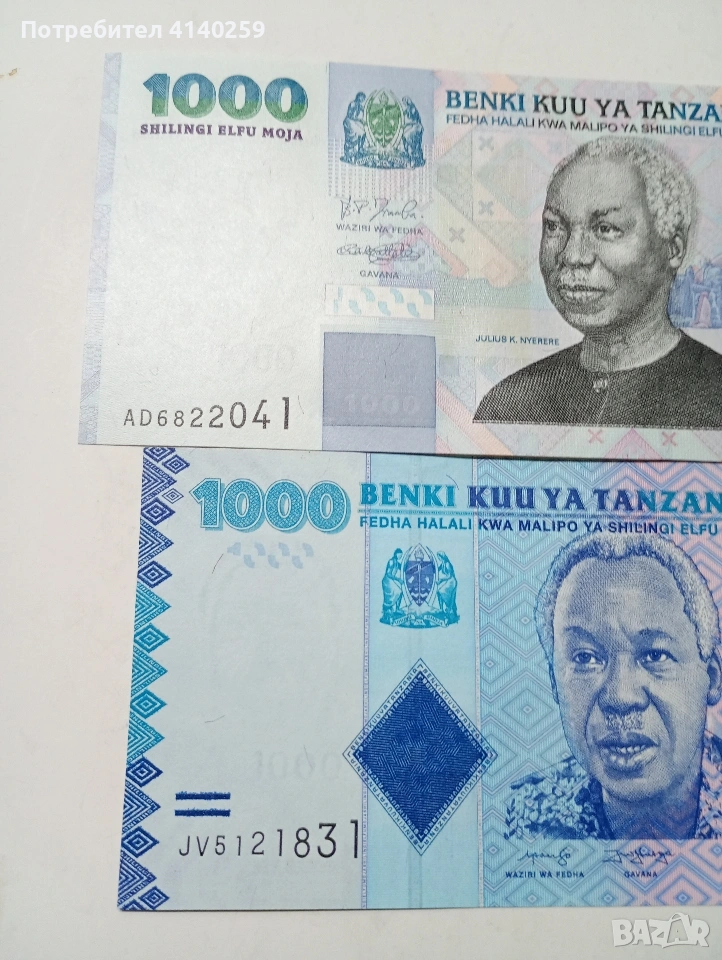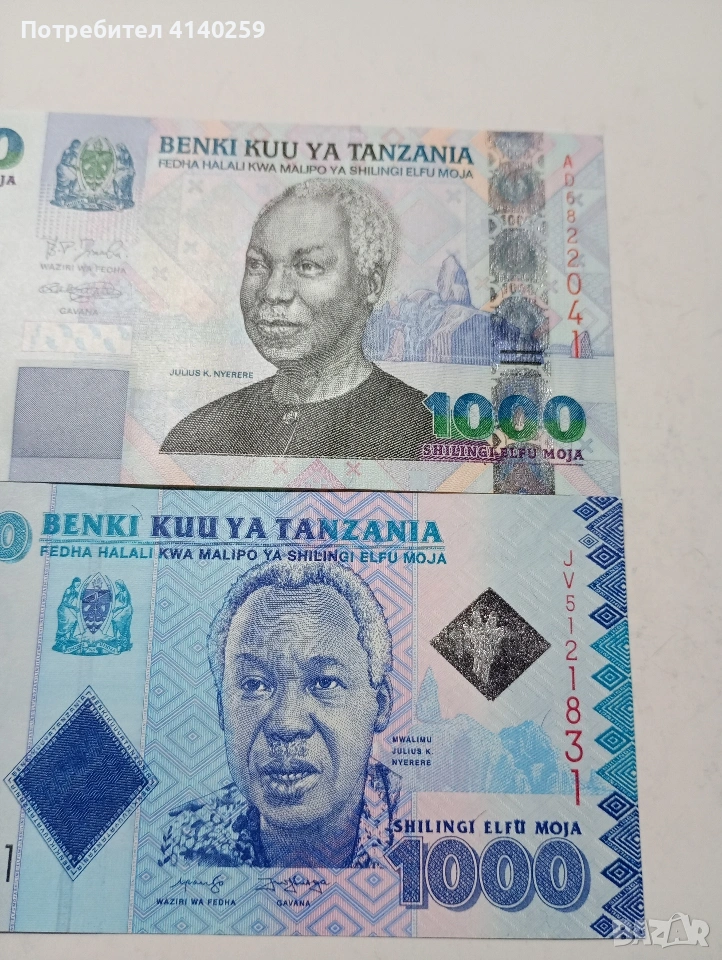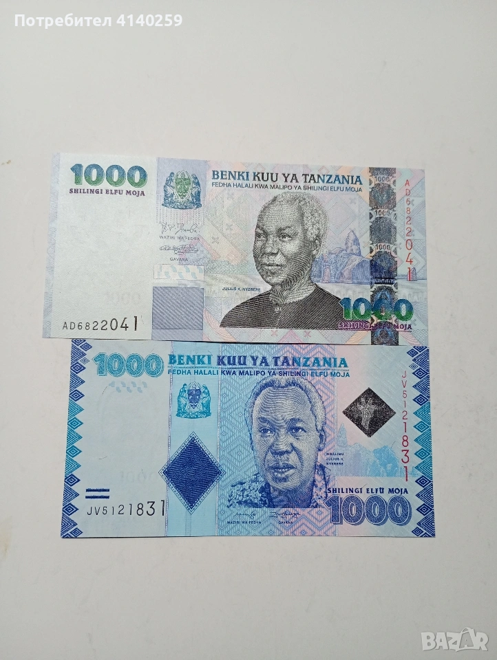 ТАНЗАНИЯ БАНКНОТИ 1000 ШИЛИНГА 2009-2015 Г СЪСТОЯНИЕ НОВО ЦЕНА ЗА 2 БРОЯ ПОЛУЧАВАТЕ СНИМАНИТЕ БАНКНОТИ РАЗГЛЕДАЙТЕ ДРУГИТЕ МИ ОБЯВИ ДА КОМБИНИРАТЕ ДОСТАВКА ЕКОНТ ЗА ВАРНА ЛИЧНО