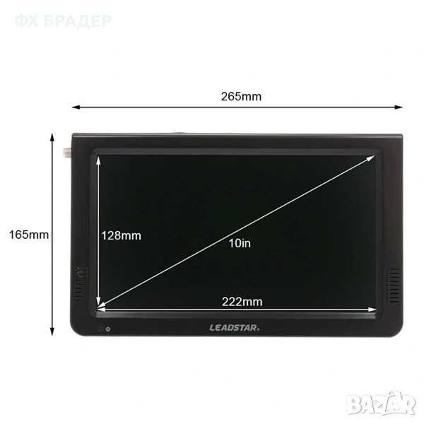 Портативен 10-инчов цифров LED телевизор с антена, дистанционно и възможност за 1080P – идеален за кола, къмпинг и пътуване