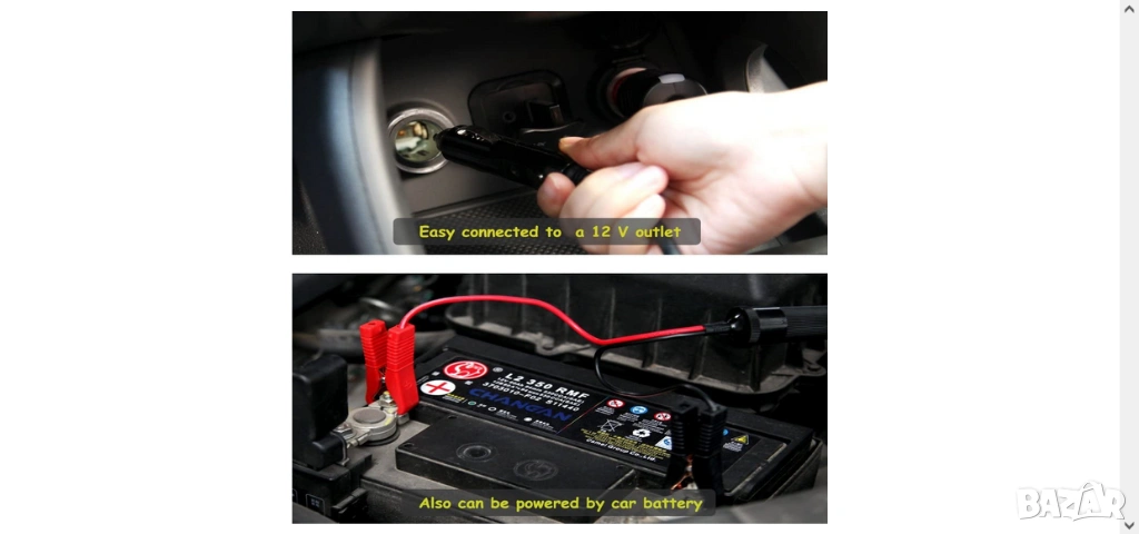 6. Моля, обърнете внимание на плюса и минуса на батерията. Когато щипката на батерията е свързана към автомобилния акумулатор (DC 12V), не разменяйте позицията.