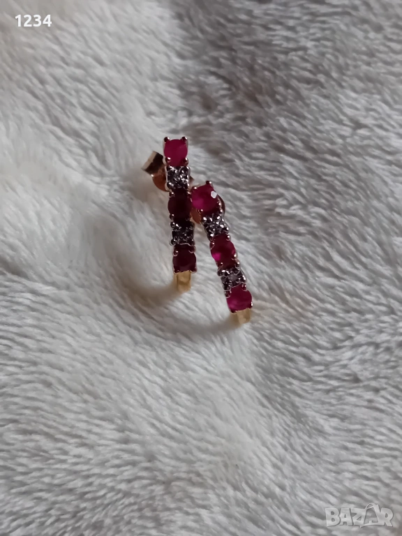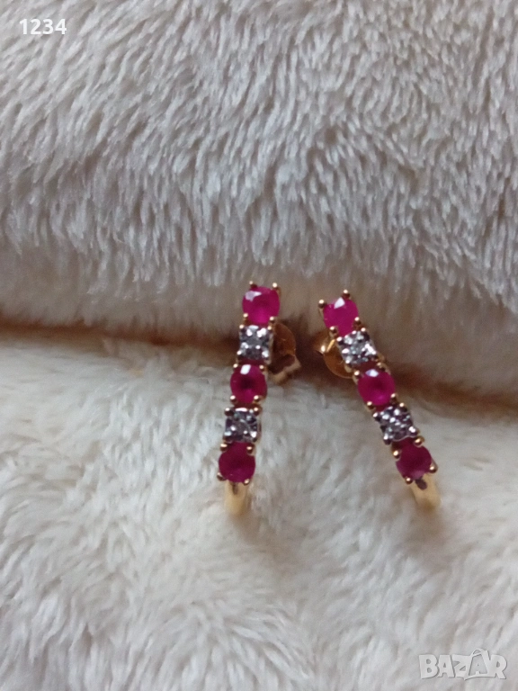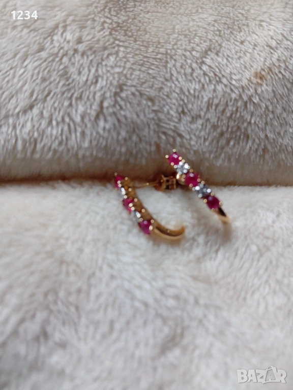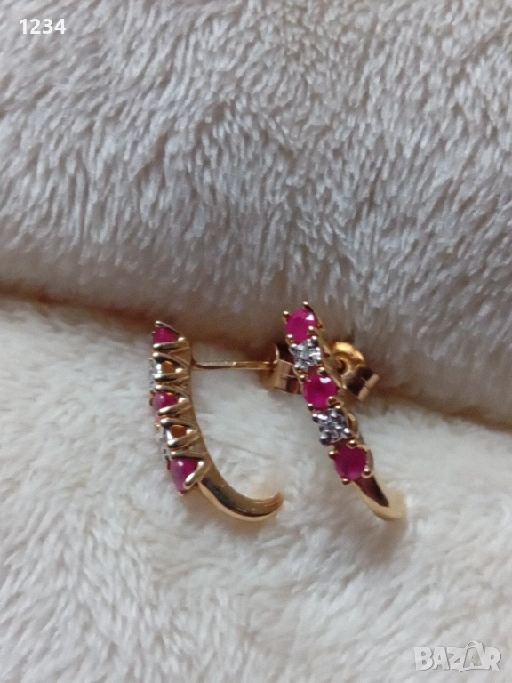 Винтидж златни обеци с рубини и диаманти → Обява 53509606