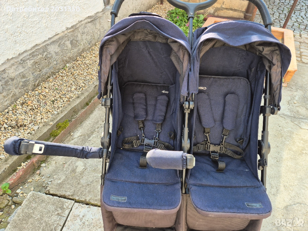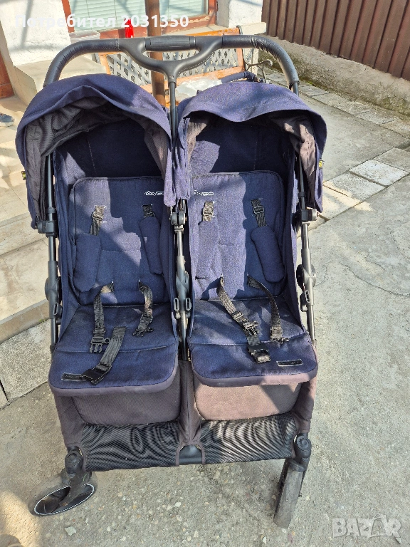 Количката е изключително маневрена и минава през тесни пространства. Сгъва се и се събира в багажник. В прекрасно състояние-има само следи от нормална употреба. Дъждобрана не е ползван изобщо. Прекрасен избор е за две деца.