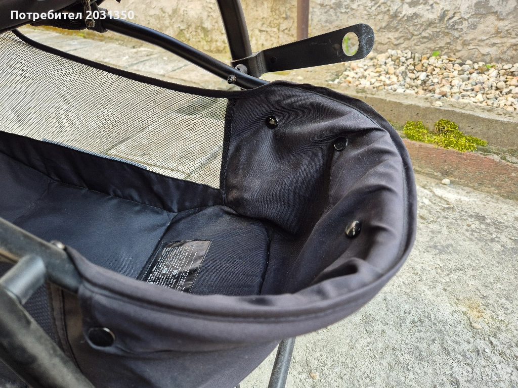 - система за двойно закрепване, гарантираща безопасност (монтиране в количката с карабини и/или със скоби)
